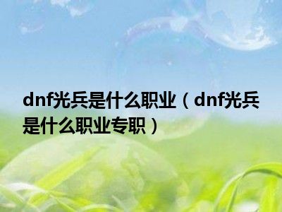目前应该是有很多小伙伴对于dnf光兵是什么职业专职方面的信息比较感兴趣,现在小编就收集了一些与dnf光兵是什么职业专职相关的信息来分享给大家,感兴趣的小伙伴可以接着往下看,希望会帮助到你哦。
