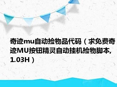 相信目前很多小伙伴对于求免费奇迹MU按钮精灵自动挂机捡物脚本,1 03H都比较感兴趣,那么小编今天在网上也是收集了一些与求免费奇迹MU按钮