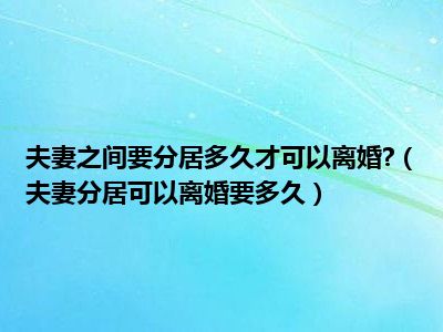 目前大家应该是对夫妻分居可以离婚要多久比较感兴趣的,所以今天CC就来为大家整理了一些关于夫妻分居可以离婚要多久方面的相关知识来分享给大家,希望大家会喜欢哦。