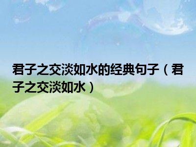 1、君子之交淡如水(jūn zǐ zhī jiāo dàn rú shuǐ),汉语成语,指君子之间建立在道义基础上的交情高雅纯净,清淡如水。