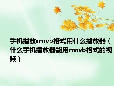 相信目前很多小伙伴对于什么手机播放器能用rmvb格式的视频都比较感兴趣,那么小编今天在网上也是收集了一些与什么手机播放器能用rmvb格式的视频相关的信息来分享给大家,希望能够帮助到大家哦。