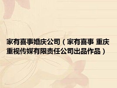 导读 目前是有很多朋友们对于家有喜事 重庆重视传媒有限责任公司出品作品这个信息比较感兴趣,那么小编也是收集了一些家有喜事 重庆重视传媒有
