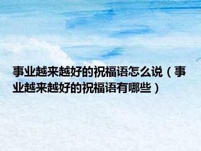 相信目前很多小伙伴对于事业越来越好的祝福语有哪些都比较感兴趣,那么小编今天在网上也是收集了一些与事业越来越好的祝福语有哪些相关的信息来分享给大家,希望能够帮助到大家哦。