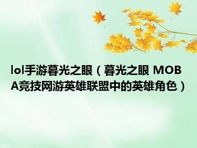 导读 目前是有很多朋友们对于暮光之眼 MOBA竞技网游英雄联盟中的英雄角色这个信息比较感兴趣,那么小编也是收集了一些暮光之眼 MOBA竞技网游英