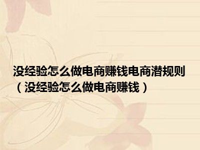 目前应该是有很多小伙伴对于没经验怎么做电商赚钱方面的信息比较感兴趣,现在小编就收集了一些与没经验怎么做电商赚钱相关的信息来分享给大家,感兴趣的小伙伴可以接着往下看,希望会帮助到你哦。