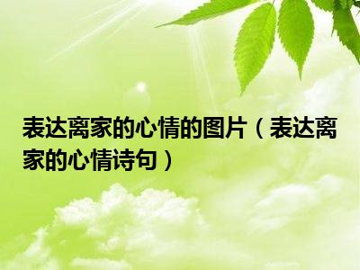 目前应该是有很多小伙伴对于表达离家的心情诗句方面的信息比较感兴趣,现在小编就收集了一些与表达离家的心情诗句相关的信息来分享给大家,感兴趣的小伙伴可以接着往下看,希望会帮助到你哦。