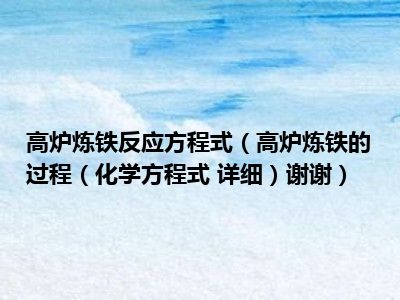 目前应该是有很多小伙伴对于高炉炼铁的过程(化学方程式 详细)谢谢方面的信息比较感兴趣,现在小编就收集了一些与高炉炼铁的过程(化学方程式 详细)谢谢相关的信息来分享给大家,感兴趣的小伙伴可以接着往下看,希望会帮助到你哦。