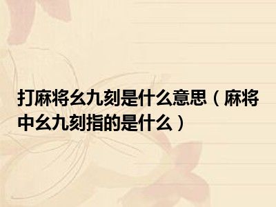 目前应该是有很多小伙伴对于麻将中“幺九刻”指的是什么方面的信息比较感兴趣,现在小编就收集了一些与麻将中“幺九刻”指的是什么相关的信息来分享给大家,感兴趣的小伙伴可以接着往下看,希望会帮助到你哦。