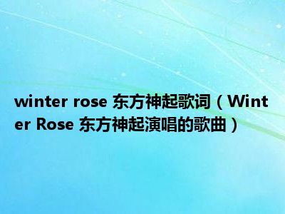 1、《Winter Rose》是东方神起于2011年11月30日发行的第三十三张日文单曲《Winter ~Winter Rose / Duet -winter ver.-~》中的主打曲。