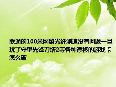 相信目前很多小伙伴对于网络100M的联通光纤,测速各种没問題,一旦玩守望先锋和daota2等游戏卡的各种漂移,怎么破啊。都比较感兴趣,那么小编今天在网上也是收集了一些与网络100M的联通光纤,测速各种没問題,一旦玩守望先锋和daota2等游戏卡的各种漂移,怎么破啊。相关的信息来分享给大家,希望能够帮助到大家哦。