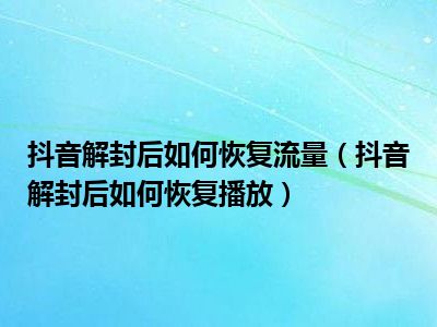 导读 1、抖音解封后如何恢复播放2、在Tik Tok恢复播放量的方法是坚持每天发几篇Tik Tok原创文章,最好是对大家有帮助或者实用有意义的内容