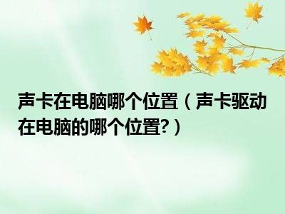 相信目前很多小伙伴对于声卡驱动在电脑的哪个位置?都比较感兴趣,那么小编今天在网上也是收集了一些与声卡驱动在电脑的哪个位置?相关的信息来分享给大家,希望能够帮助到大家哦。