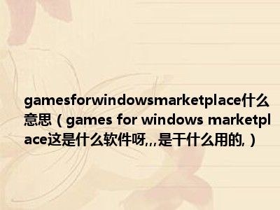 gamesforwindowsmarketplace什么意思(games for windows marketplace这是什么软件呀,,,是干什么用的,)