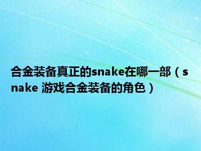 1、Snake(斯内克、蛇)是游戏《合金装备(Metal Gear)》系列中主要角色的一种称呼,多身为主角。