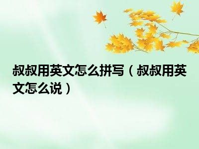 目前应该是有很多小伙伴对于叔叔用英文怎么说方面的信息比较感兴趣,现在小编就收集了一些与叔叔用英文怎么说相关的信息来分享给大家,感兴趣的小伙伴可以接着往下看,希望会帮助到你哦。