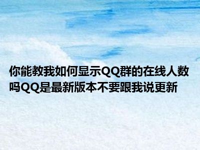 相信目前很多小伙伴对于来个人教我肿么显示QQ群在线人数?!?!QQ已经是最新版本了,别和我说更新!都比较感兴趣,那么小编今天在网上也是收集了一些与来个人教我肿么显示QQ群在线人数?!?!QQ已经是最新版本了,别和我说更新!相关的信息来分享给大家,希望能够帮助到大家哦。