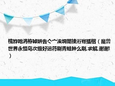 相信目前很多小伙伴对于魔兽世界永恒岛次级好运符刷青蛙肿么刷,求解,谢谢!都比较感兴趣,那么小编今天在网上也是收集了一些与魔兽世界永恒