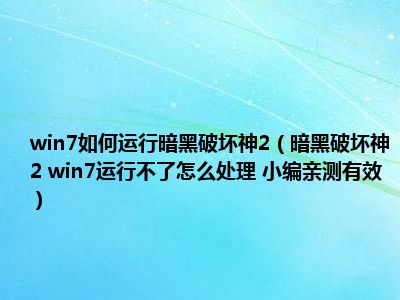 相信目前很多小伙伴对于暗黑破坏神2 win7运行不了怎么处理 小编亲测有效都比较感兴趣,那么小编今天在网上也是收集了一些与暗黑破坏神2 win7运行不了怎么处理 小编亲测有效相关的信息来分享给大家,希望能够帮助到大家哦。