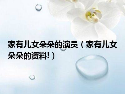 目前应该是有很多小伙伴对于家有儿女朵朵的资料!方面的信息比较感兴趣,现在小编就收集了一些与家有儿女朵朵的资料!相关的信息来分享给大家,感兴趣的小伙伴可以接着往下看,希望会帮助到你哦。