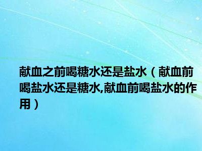 目前大家应该是对献血前喝盐水还是糖水,献血前喝盐水的作用比较感兴趣的,所以今天小编CC就来为大家整理了一些关于献血前喝盐水还是糖水,献血前喝盐水的作用方面的相关知识来分享给大家,希望大家会喜欢哦。