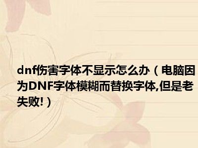 相信目前很多小伙伴对于电脑因为DNF字体模糊而替换字体,但是老失败!都比较感兴趣,那么小编今天在网上也是收集了一些与电脑因为DNF字体模糊而替换字体,但是老失败!相关的信息来分享给大家,希望能够帮助到大家哦。