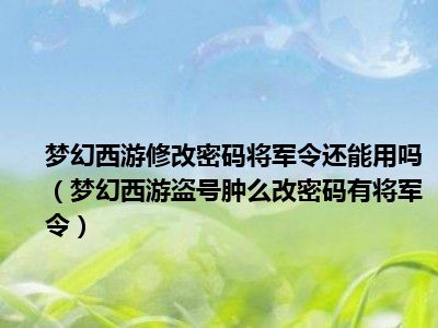 相信目前很多小伙伴对于梦幻西游盗号肿么改密码有将军令都比较感兴趣,那么小编今天在网上也是收集了一些与梦幻西游盗号肿么改密码有将军令相关的信息来分享给大家,希望能够帮助到大家哦。