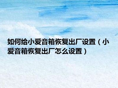 导读 1、小爱音箱恢复出厂怎么设置2、如何恢复小米AI音箱的出厂设置:音箱上电时,长按“上一首”和“下一首”5秒,重置音箱。3、有六个环形麦克