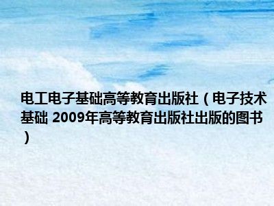 导读 目前是有很多朋友们对于电子技术基础 2009年高等教育出版社出版的图书这个信息比较感兴趣,那么小编也是收集了一些电子技术基础 2009年高