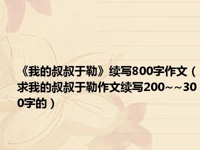目前应该是有很多小伙伴对于求我的叔叔于勒作文续写200~~300字的方面的信息比较感兴趣,现在小编就收集了一些与求我的叔叔于勒作文续写200~~300字的相关的信息来分享给大家,感兴趣的小伙伴可以接着往下看,希望会帮助到你哦。