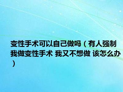 目前应该是有很多小伙伴对于有人强制我做变性手术 我又不想做 该怎么办方面的信息比较感兴趣,现在小编就收集了一些与有人强制我做变性手术 我又不想做 该怎么办相关的信息来分享给大家,感兴趣的小伙伴可以接着往下看,希望会帮助到你哦。