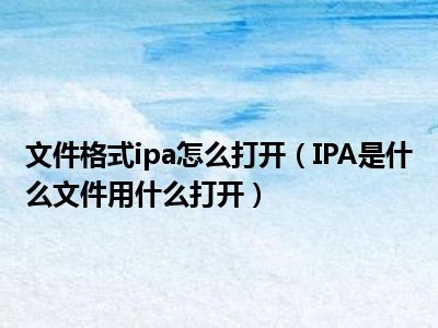 目前应该是有很多小伙伴对于IPA是什么文件用什么打开方面的信息比较感兴趣,现在小编就收集了一些与IPA是什么文件用什么打开相关的信息来分享给大家,感兴趣的小伙伴可以接着往下看,希望会帮助到你哦。