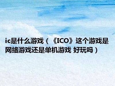 目前应该是有很多小伙伴对于《ICO》这个游戏是网络游戏还是单机游戏 好玩吗方面的信息比较感兴趣,现在小编就收集了一些与《ICO》这个游