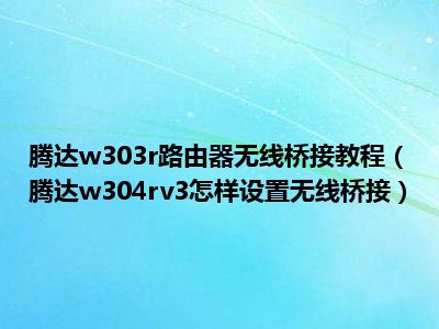 相信目前很多小伙伴对于腾达w304rv3怎样设置无线桥接都比较感兴趣,那么小编今天在网上也是收集了一些与腾达w304rv3怎样设置无线桥接相关的信息来分享给大家,希望能够帮助到大家哦。