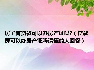 导读 目前大家应该是对贷款房可以办房产证吗请懂的人回答比较感兴趣的,所以今天好房网小编CC就来为大家整理了一些关于贷款房可以办房产证吗请懂