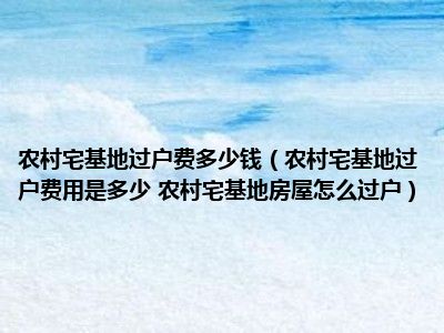 导读 目前大家应该是对农村宅基地过户费用是多少 农村宅基地房屋怎么过户比较感兴趣的,所以今天好房网小编CC就来为大家整理了一些关于农村宅基