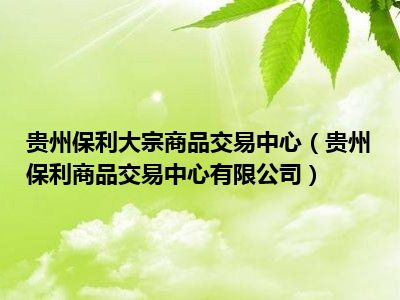 导读 相信目前很多小伙伴对于贵州保利商品交易中心有限公司都比较感兴趣,那么小搜今天在网上也是收集了一些与贵州保利商品交易中心有限公司相关