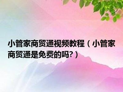 相信目前很多小伙伴对于小管家商贸通是免费的吗?都比较感兴趣,那么小编今天在网上也是收集了一些与小管家商贸通是免费的吗?相关的信息来分享给大家,希望能够帮助到大家哦。