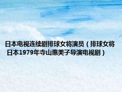 导读 目前是有很多朋友们对于排球女将 日本1979年寺山惠美子导演电视剧这个信息比较感兴趣,那么小编也是收集了一些排球女将 日本1979年寺山惠