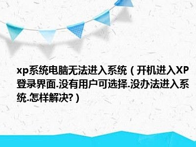相信目前很多小伙伴对于开机进入XP登录界面.没有用户可选择.没办法进入系统.怎样解决?都比较感兴趣,那么小编今天在网上也是收集了一些与开机进入XP登录界面.没有用户可选择.没办法进入系统.怎样解决?相关的信息来分享给大家,希望能够帮助到大家哦。