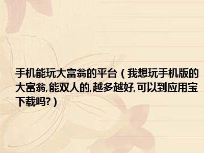 导读相信目前很多小伙伴对于我想玩手机版的大富翁,能双人的,越多越好,可以到应用宝下载吗?都比较感兴趣,那么小编今天在网上也是收集了一些与...