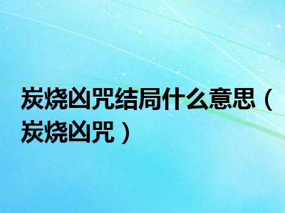 导读 目前是有很多朋友们对于炭烧凶咒这个信息比较感兴趣,那么小编也是收集了一些炭烧凶咒相关的信息来分享给大家,希望你会喜欢哦。