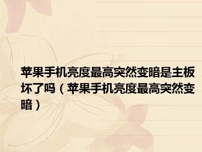 导读 1、苹果手机亮度最高突然变暗2、苹果手机亮度最高突然变暗是因为手机电池过热,电池超过40度,手机自我保护亮度降低。不小心给手机设置了夜