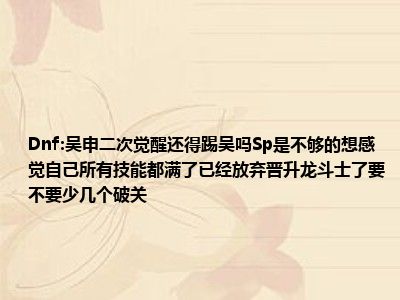相信目前很多小伙伴对于dnf武神二次觉醒还要武神强踢吗?不够sp啊,想二觉全部技能都满上,已放弃升龙霸,破碎要不要少几级都比较感兴趣,那么