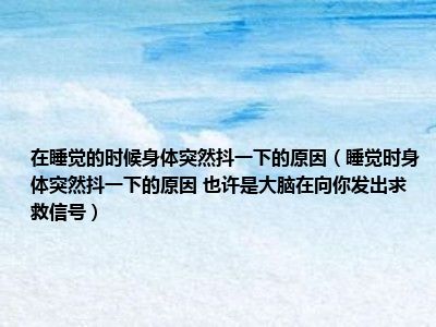 目前大家应该是对睡觉时身体突然抖一下的原因 也许是大脑在向你发出求救信号比较感兴趣的,所以今天小编CC就来为大家整理了一些关于睡觉时身体突然抖一下的原因 也许是大脑在向你发出求救信号方面的相关知识来分享给大家,希望大家会喜欢哦。