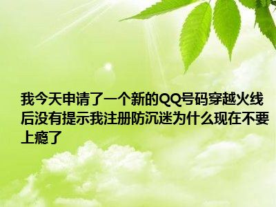 相信目前很多小伙伴对于我今天申请了个新的QQ号我玩穿越火线进去后没提示让我注册防沉迷为什么啊、?是不是现在不要防沉迷了?都比较感兴趣