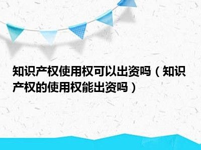 目前大家应该是对知识产权的使用权能出资吗比较感兴趣的,所以今天CC就来为大家整理了一些关于知识产权的使用权能出资吗方面的相关知识来分享给大家,希望大家会喜欢哦。