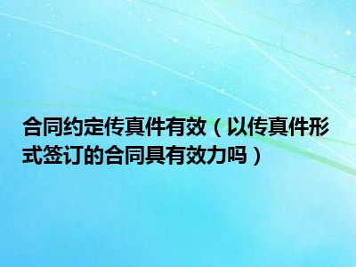 目前大家应该是对以传真件形式签订的合同具有效力吗比较感兴趣的,所以今天CC就来为大家整理了一些关于以传真件形式签订的合同具有效力吗方面的相关知识来分享给大家,希望大家会喜欢哦。