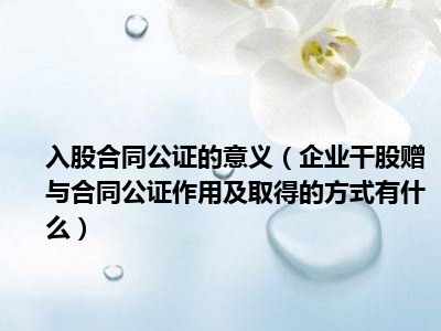 目前大家应该是对企业干股赠与合同公证作用及取得的方式有什么比较感兴趣的,所以今天CC就来为大家整理了一些关于企业干股赠与合同公证作用及取得的方式有什么方面的相关知识来分享给大家,希望大家会喜欢哦。