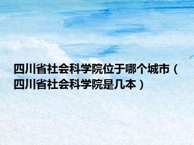 目前应该是有很多小伙伴对于四川省社会科学院是几本方面的信息比较感兴趣,现在小编就收集了一些与四川省社会科学院是几本相关的信息来分享给大家,感兴趣的小伙伴可以接着往下看,希望会帮助到你哦。