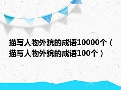 目前应该是有很多小伙伴对于描写人物外貌的成语100个方面的信息比较感兴趣,现在小编就收集了一些与描写人物外貌的成语100个相关的信息来分享给大家,感兴趣的小伙伴可以接着往下看,希望会帮助到你哦。